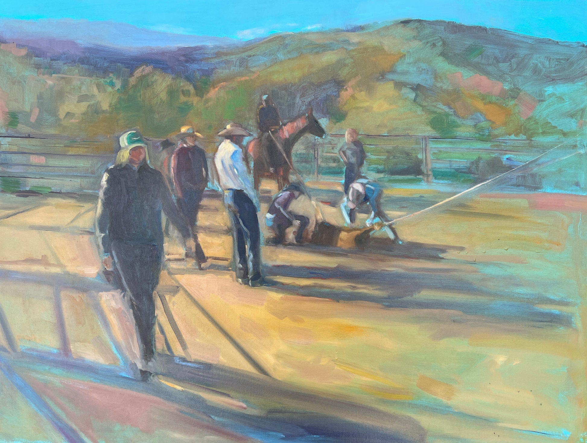 Perfect for collectors who appreciate Western themes, rural life, and dynamic figurative paintings, this piece brings the essence of the open range and camaraderie into any space. A beautiful addition to any collection celebrating the spirit of ranch life.